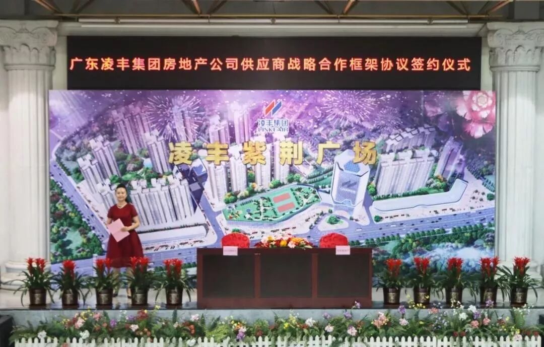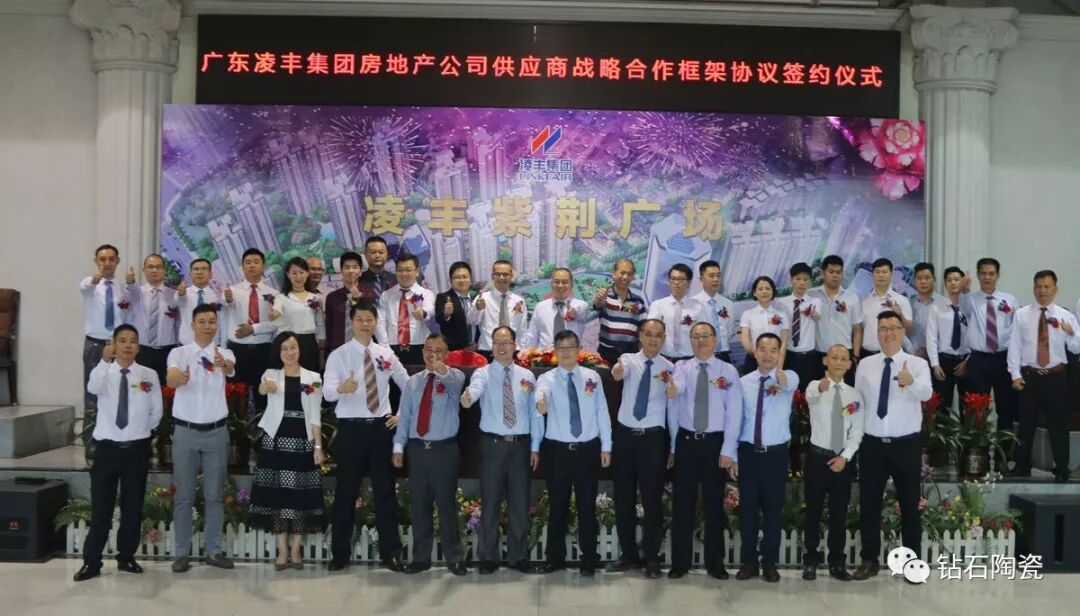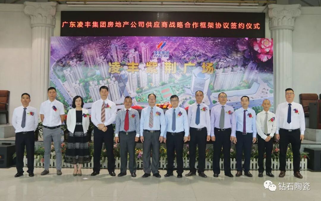 广东凌丰集团房地产公司供应商战略合作框架协议签约仪式在凌丰集团总部成功举办,钻石陶瓷与凌丰集团达成战略合作.