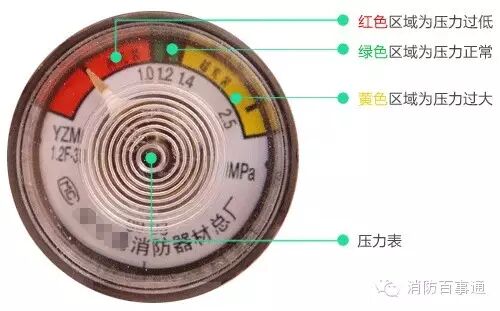 2、储压式灭火器压力符合要求,压力表指针在绿区。