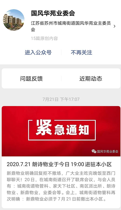 最近,我听说吴中城南的首开国风华苑正在换物业,业主自创公众号,列出数十项问题,业委会进行投票、招标,折腾了将近3个月终于罢免了老物业,签约了朗诗物业!