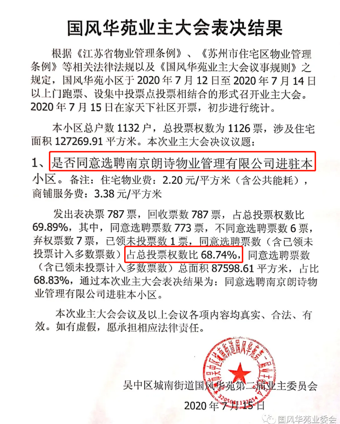 ●7月20日,国风华苑业委会和南京朗诗物业正式签约。