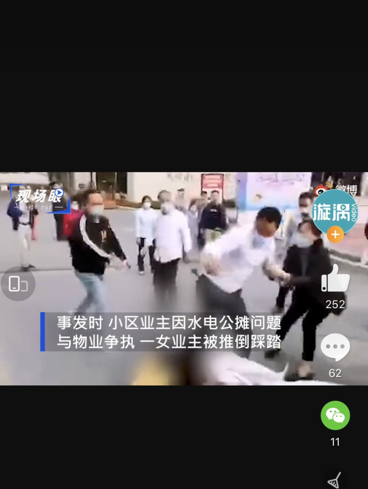 据报道,11月7日,广西南宁。中午,恒大苹果园小区一女业主,被物业工作人员推倒后猛踹。小区业主反映,事发时,业主正在就水电问题和公摊问题维权,现场还有民警维持秩序。