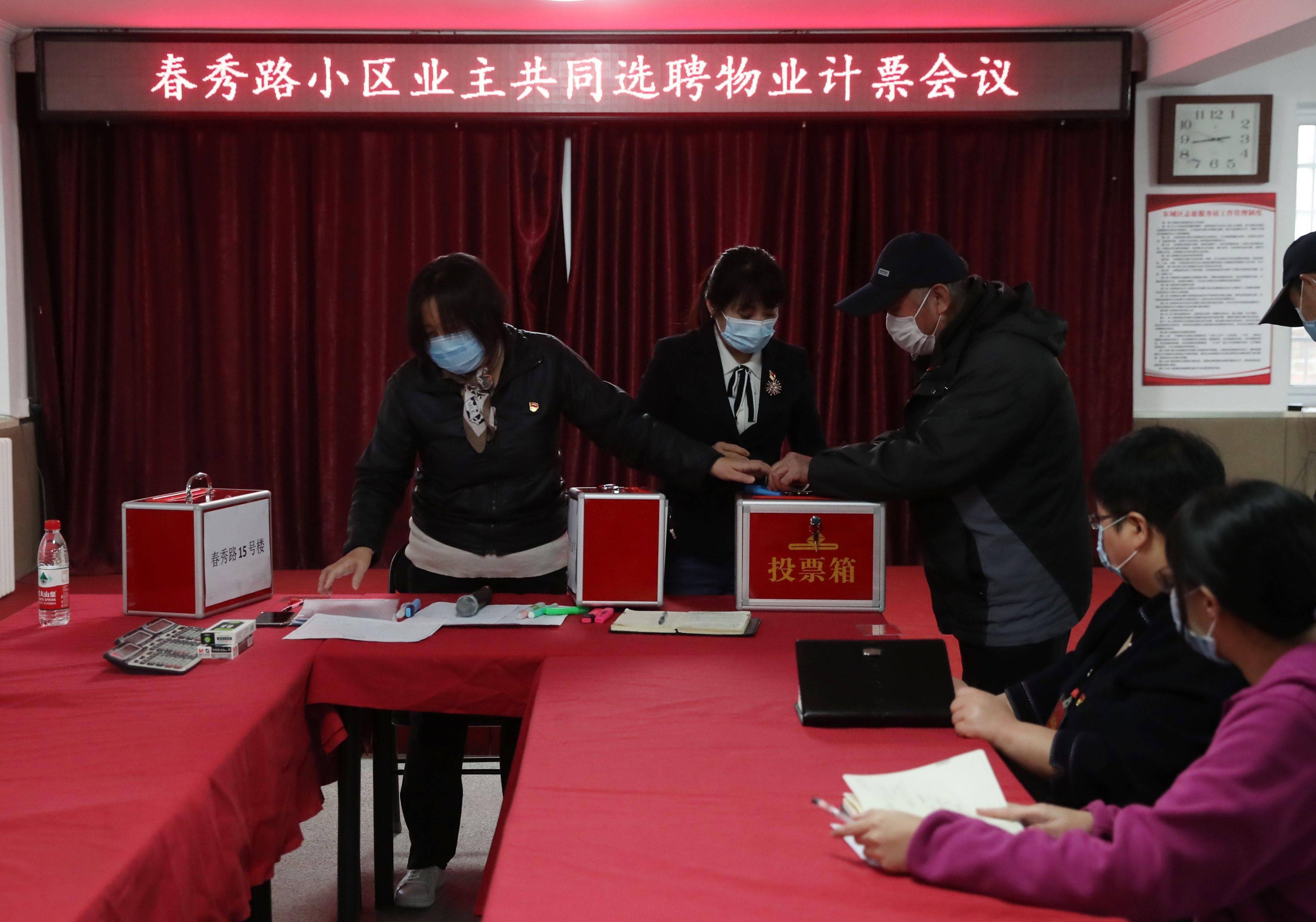 春秀路小区选聘物业投票现场。新京报记者 王贵彬 摄